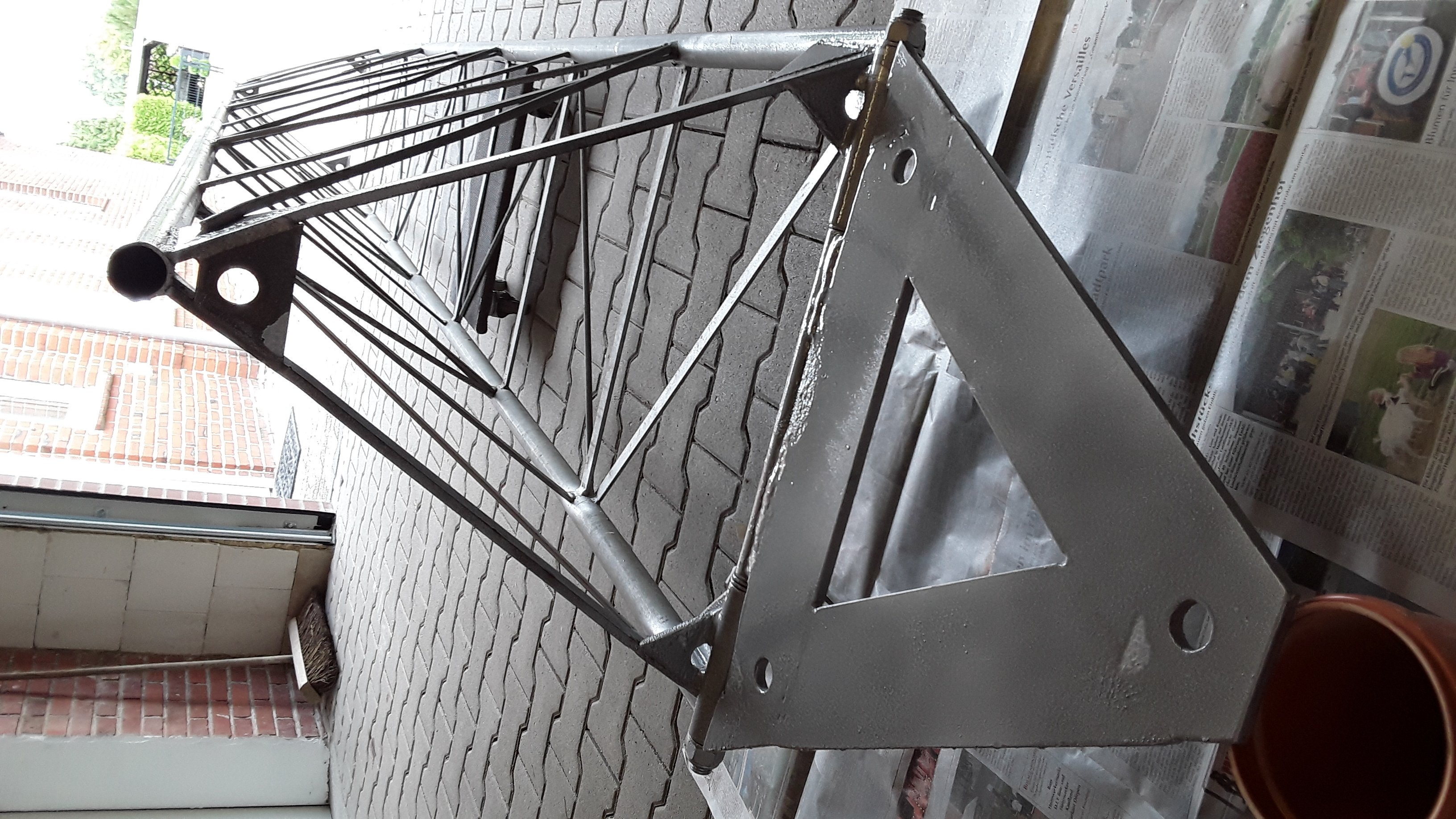 De oude mast heb ik kantelbaar gemaakt zodat ik die met een elektrische lier kan laten zakken en er niet iedere keer in hoef te klimmen.