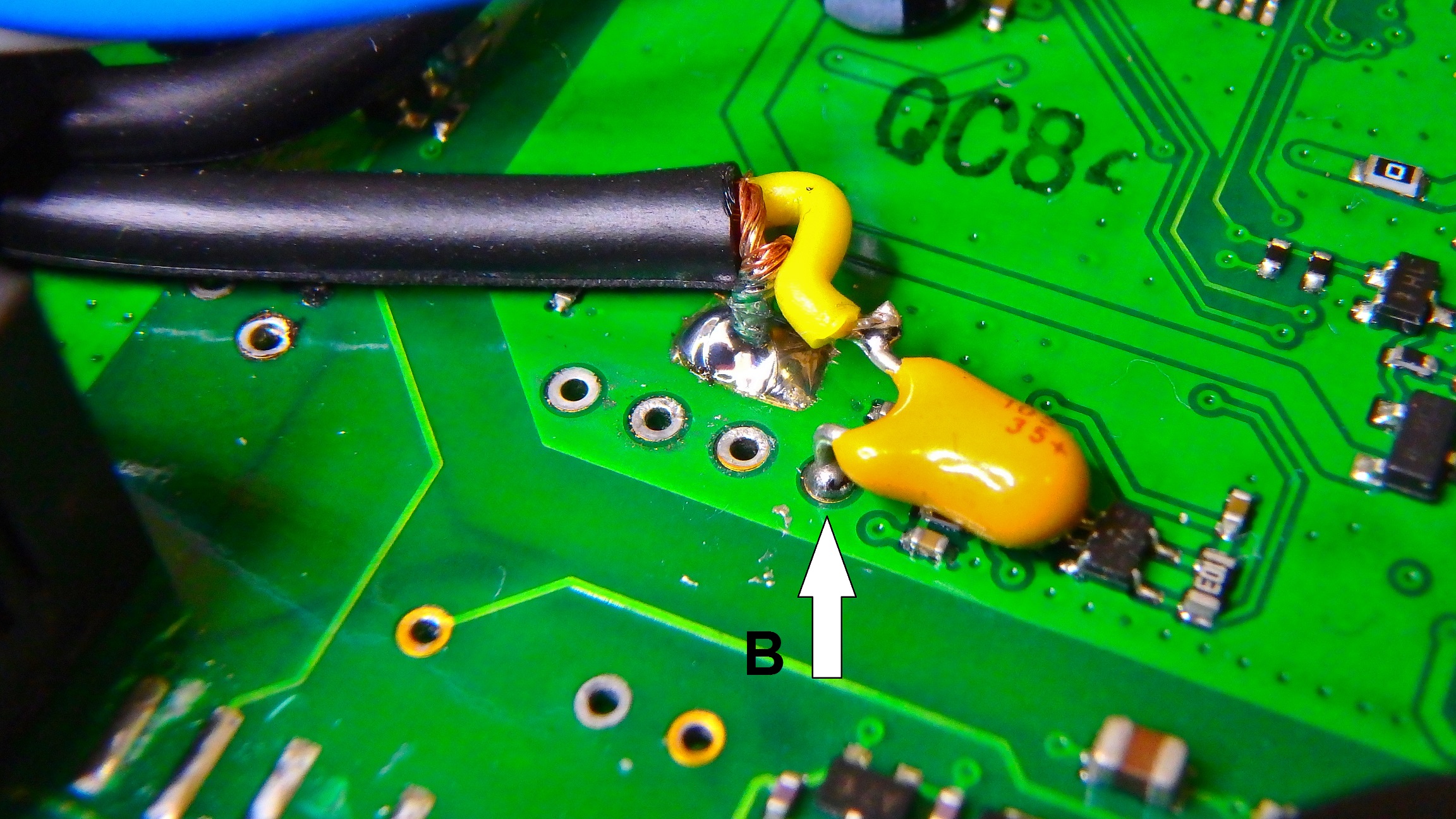 Punt A audio MIC zoals door mij is gekozen. Op de fot is echter te zien dat VK3 KBC een ander, lees lastiger, punt heeft gekozen.